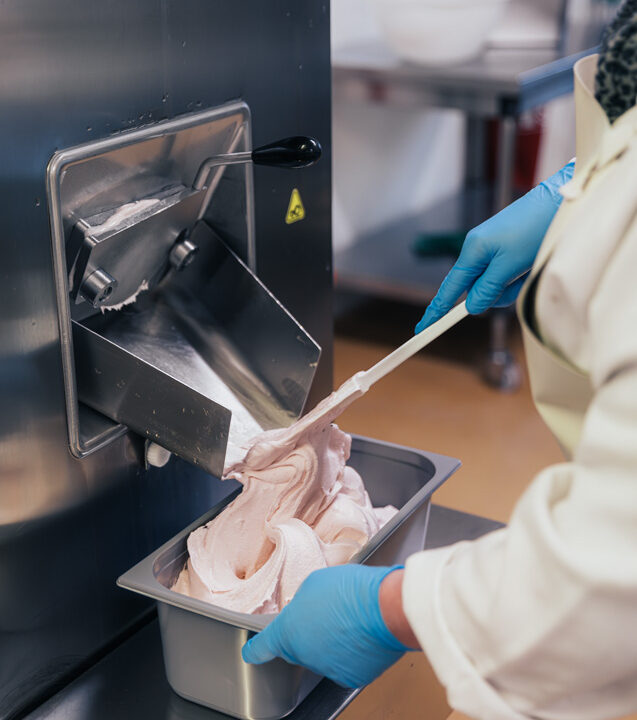 En 1996, après quelques croquis préparatoires, une amie illustratrice de nos fondateurs posait les bases de notre identité dans un joli dessin qui nous fit connaître dans toute l’Ardèche. Dans un pot en terre cuite sur lequel on pouvait lire la trace des chemins de labours, trônaient trois boules de glaces colorées. Ce tout premier logo incarnait notre envie de simplicité, notre ancrage dans le terroir comme notre vocation à en extraire des saveurs qui feraient briller les yeux des gourmands.